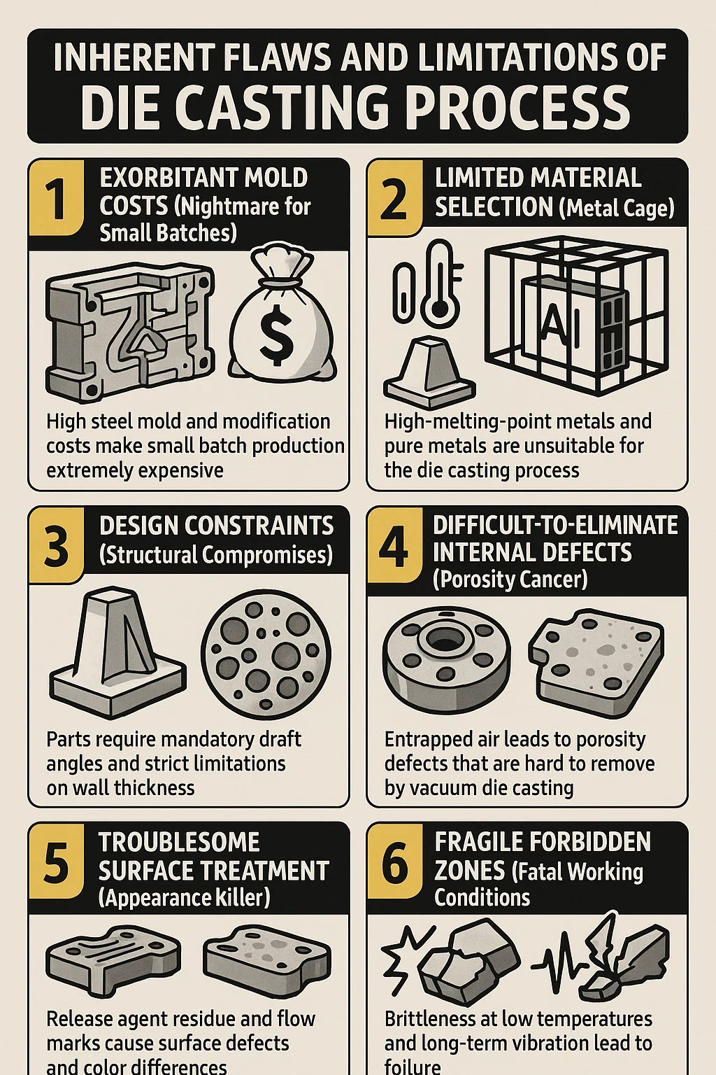 Vakumlu basınçlı dökümün kürlenmesi de zordur: Gözenekliliği azaltabilmesine rağmen, ekipman %30 daha pahalıdır ve bu da onu küçük fabrikalar için karşılanamaz hale getirir.