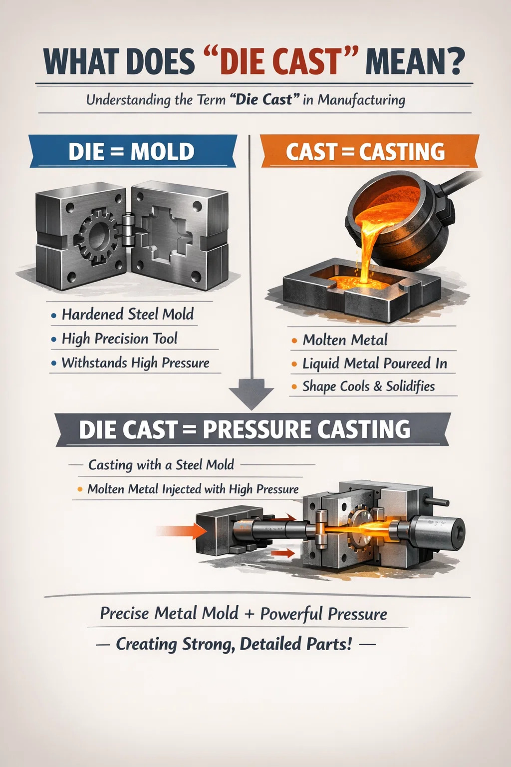 Bu iki şekilde "basınçlı döküm" ile birleştirilmesinin temel anlamı şudur: hassas bir metal kalıp kullanılarak döküm.